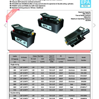 | EPA1500 | 1500 | 3/8"-18NPTF | 1.08 | 0.18 | 7.59-12.07 | 220.87 | Aluminum |