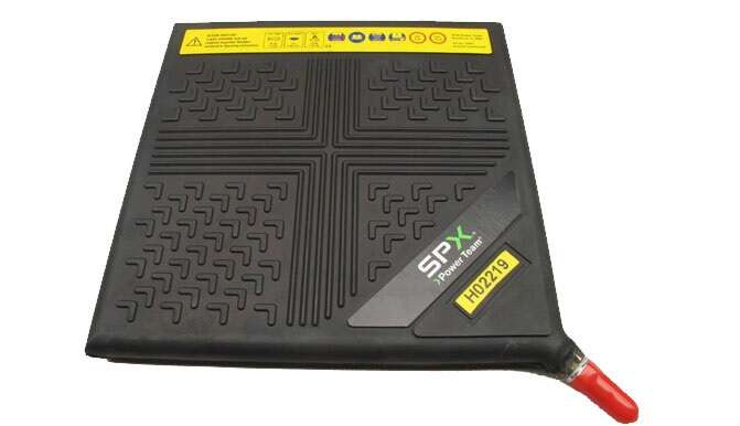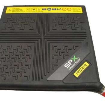 The non-skid space-age reinforced Power Team inflatable jack is perfect for a number of applications. Uninflated jacks are less than 1" (25,4 mm) thick, making lifting tasks in small spaces seem routine. Constructed of non-conducting, high-quality rubber material with multi-layer aramid fiber reinforcement, samples of the inflatable jacks are pressure tested to 20 bar and cycle tested (10,000 inflate / deflate cycles at 8 bar for 10,000 inflate / deflate cycles). The controller, shut-off and air hoses are all equipped with an industrial interchange style quick disconnect air coupler. Female half coupler bodies have a locking collar to help the operator avoid accidentally disconnecting the jack while under load. The top and bottom surface of the jack has a skid-resistant, interlocking pattern to assist in alignment of two jacks being used together. Single jack controller with "dead man" control (part number 350090) can be used individually or in multiples to regulate the number of jacks desired. Heavy attachment handles are provided on the two largest jacks for attachment of a rope or hook to help in positioning the jack. Inflation hose system is color-coded (red and yellow) for easy recognition when using more than one jack. The jacks can be used at ambient temperatures of -20°c (-4°f) to + 50°c (+ 122°f).