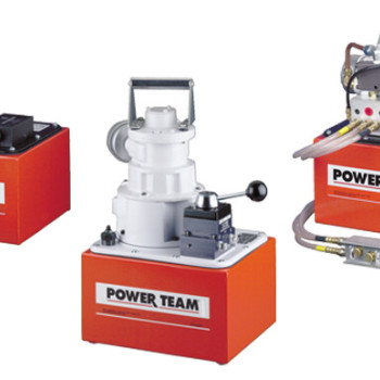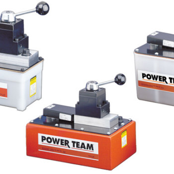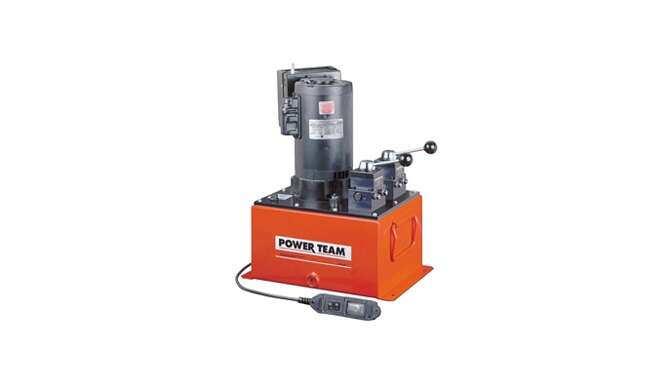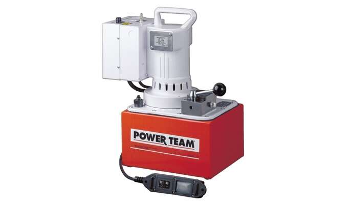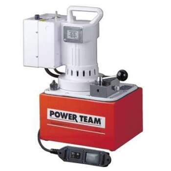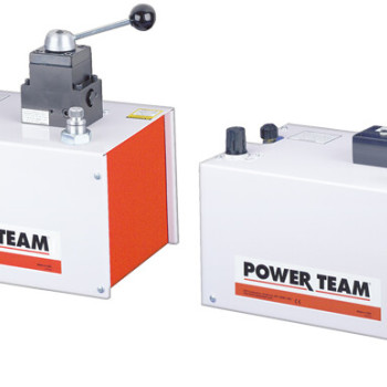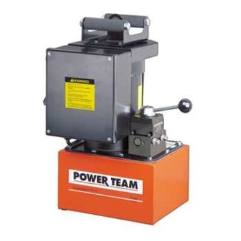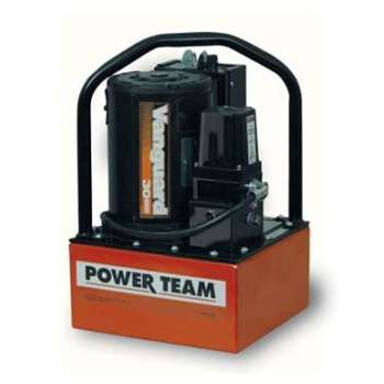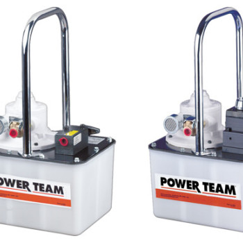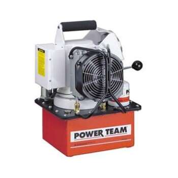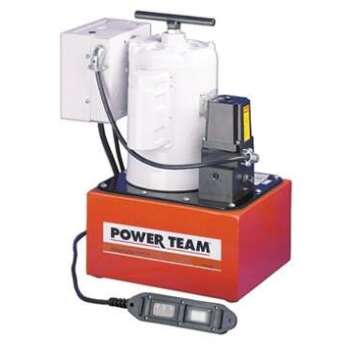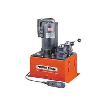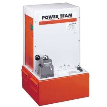 A powerful multifaceted pump, the Power Team 55 pump excels at multiple applications. From heavy construction to concrete stressing this pump series is designed for intensity. With low voltage starting possible, the 50/60 Hz universal motor; draws 25 amps at full load, and can start at reduced voltage. CSA rated for intermittent duty. 10 foot (3,1 m) remote motor control (except PE552S which has a 25 foot (7,6 m) remote motor and valve control). True unloading valve achieves greater pump efficiency, allowing higher flows at maximum pressure. Reservoirs available in sizes up to 10 gallons (38 liter). Lightweight and portable. Best weight-to-performance ratio of all Power Team pumps. “Assemble to Order” System: There are times when a custom pump is required. Power Team’s “Assemble to Order” system allows you to choose from a wide range of pre-engineered, off-the shelf components to build a customized pump to fit specific requirements. By selecting standard components you get a “customized” pump without “customized” prices. All pumps come fully assembled, add oil and ready for work.