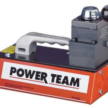Ideal for powering single-acting cylinders and portable hydraulic tools, the Power Team PA9 series pumps are easier to operate than a hand pump, designed for efficiency. Built to be economical in service; the PA9 series is not a “throwaway” unit. Unique bladder design for all-position operation and storage. Operates on 40-120 psi (3-8 bar) shop air, at 20 cfm (570 l). Hard-coat anodized aluminum housing. Oil filler with integral safety relief minimizes chance of damage to reservoir bladder if overfilling occurs.