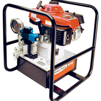 Gasoline power ideal for remote locations. A logical choice at work sites where electricity or compressed air are unavailable. For single or double-acting cylinders at operating pressures up to 10,000 psi. All gasoline engine/hydraulic pumps feature Posi-Check® valve to guard against pressure loss when valve is shifted from “advance” to “hold.”