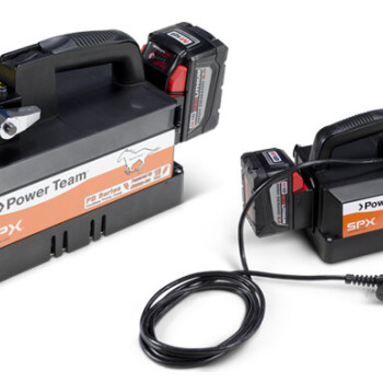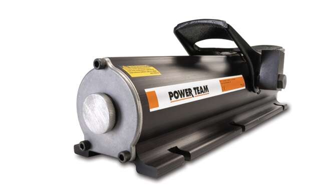 The 10 series Power Team hydraulic pumps are designed to have a maximum of 690 bar (10,000 psi) at a flow rate of 164 cc/min (10 cu. in/min). All Power Team pumps come fully assembled, and each with the ability to be valved for either single- or double acting cylinders. Designed to be compact can easily mobile, the power team 10 series includes a portable power source is included for hydraulic cylinders, and tools. The permanent magnet motor is strategically constructed to easily start under load, even with reduced voltage conditions. Battery-operated models have 8 foot (2,4 m) power cord with alligator clips to connect to any 12 volt battery, optional rechargeable battery pack with shoulder strap are alternatives for maximum portability. The Power Team 10 series pump typically delivers 15 minutes of continuous operation at 10,000 psi (700 bar) on a single battery. Built to withstand High-impact, shielded with a flame retardant construction.